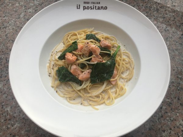 宇和島サーモンと五明ホウレン草の